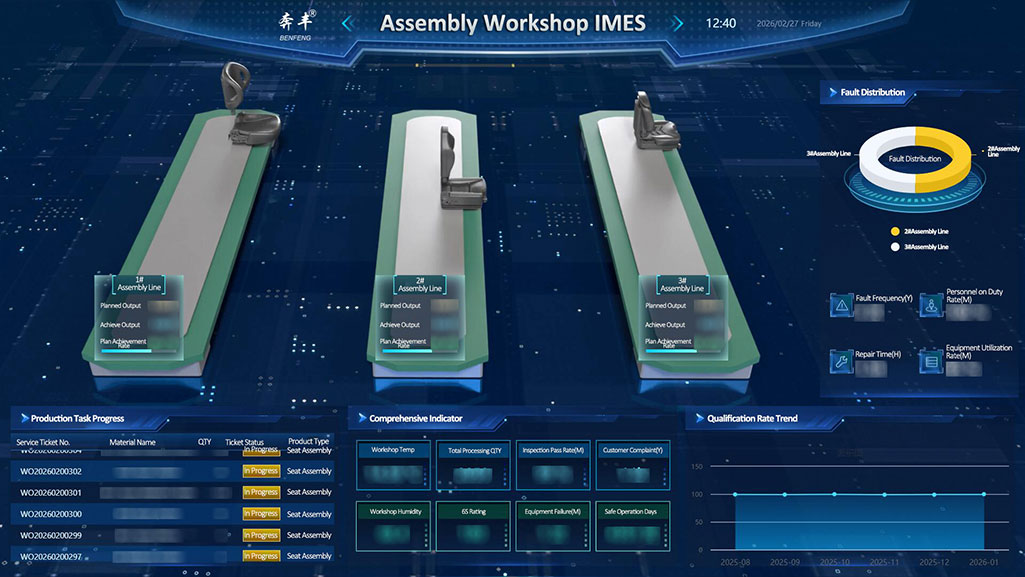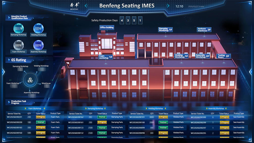 Dalam ekosistem digital Benfeng Seats IMES, bengkel pemasangan, dengan pengurusan proses penuh yang pintar, menjadi tempat ujian terakhir untuk kualiti tempat duduk yang telah siap.
