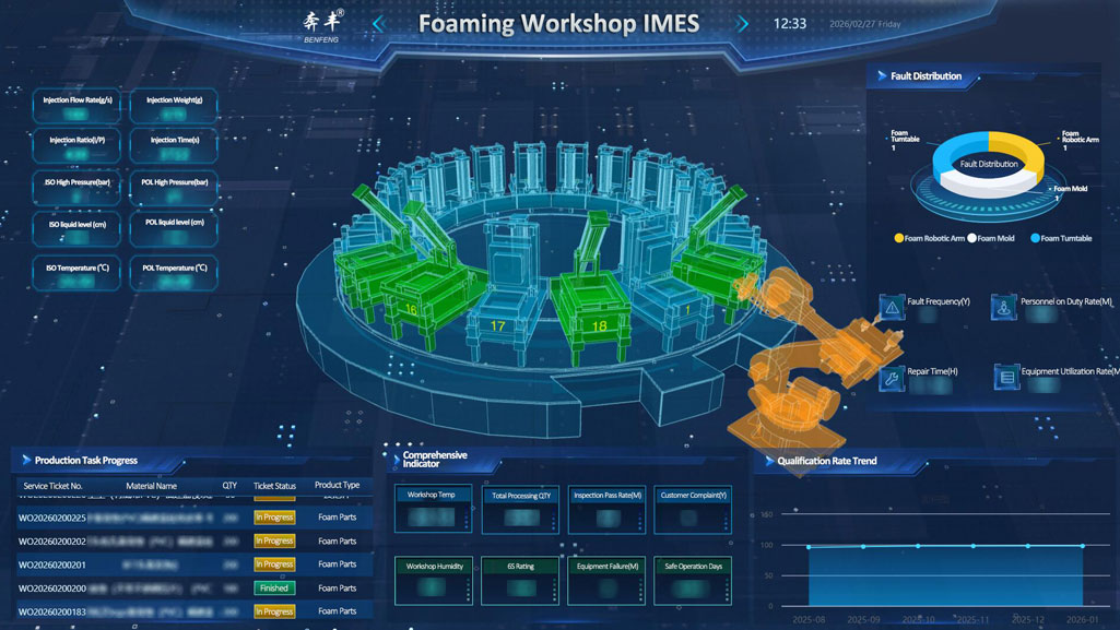 Dalam matriks digital Benfeng Seats IMES (Benfeng Seats Intelligent Manufacturing Platform), bengkel berbuih, dengan persekitaran pengeluaran yang sangat pintar, telah menjadi teras penempaan untuk prestasi keselesaan tempat duduk.